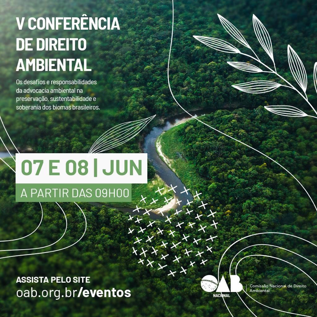 Já estão abertas as inscrições para a “V Conferência de Direito Ambiental” da OAB Nacional, que será realizada entre os dias 7 e 8 de junho. O evento é organizado pela Comissão Nacional de Direito Ambiental e terá como tema “Os desafios e responsabilidades da advocacia ambiental na preservação, sustentabilidade e soberania dos biomas brasileiros”.